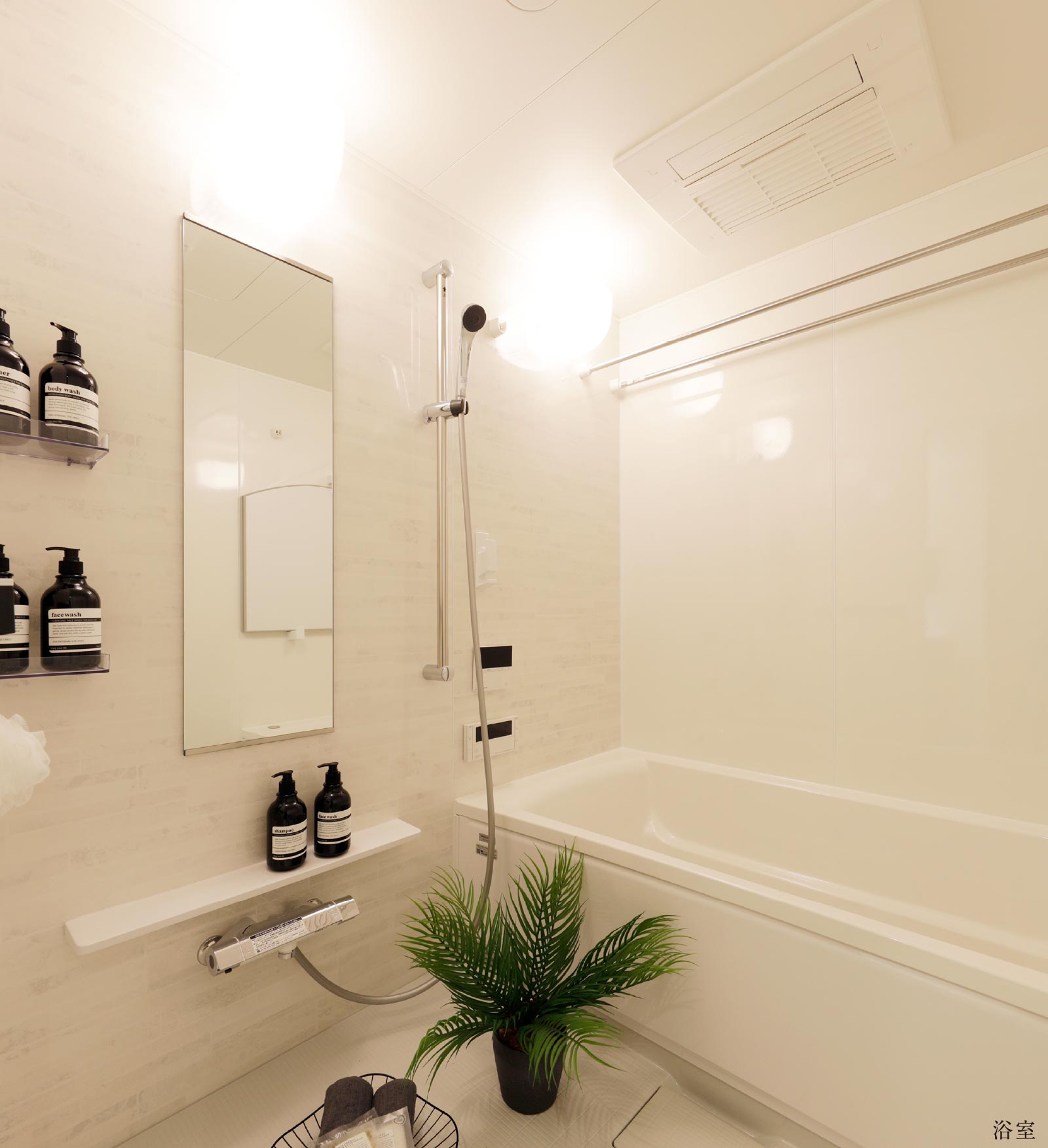 1日の疲れを洗い流してゆったりリラックスできる、機能と美しさにこだわったバスルーム。